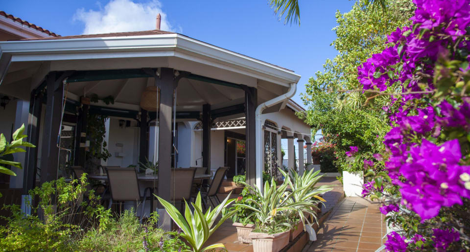 This elegant villa boasts nine oversized en suite bedrooms, a 5-foot deep pool, a bar/function room, and a grand hallway, making it equally suited as a luxury residence or a thriving business. The high ceilings throughout the property keep it cool year-round, while its 2018 renovation introduced modern bathrooms, new A/C units, and high-end furnishings. Currently, part of the villa serves as private accommodation, but there is significant potential to expand.