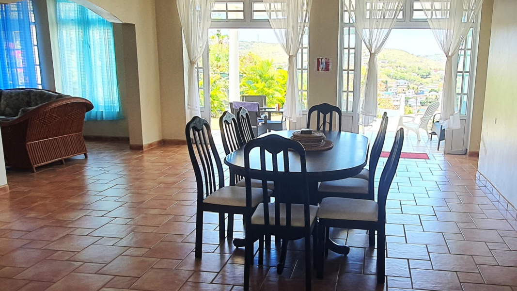 Villa Mantel is a three-bedroom villa, located in the peaceful Bonne Terre residential area, just a short drive away from Rodney Bay Marina and Rodney Bay itself, where you’ll find plenty of amenities like hotels, restaurants, supermarkets, and bars. Villa Mantel property is fully fenced and gated, surrounded by well-kept gardens with several outdoor seating areas offering beautiful views of the countryside and the sea. As you enter through the gate, you’ll find parking space for two cars. Inside, there’s a spacious living room with a powder room nearby. To the right of the living room is the kitchen, equipped with a large drinks fridge, double sink, microwave, gas hob, electric oven, and ample storage space. Adjacent to the kitchen is the dining area, perfect for entertaining guests. A TV room is located to the left of the dining area. Outside, a private terrace and barbecue area lead to a new infinity-edge pool, offering stunning views of the sea and countryside. The pool area has a sizeable sunbathing terrace. The bedrooms are located off the living room: The master bedroom has double doors opening onto the garden, along with two large walk-in closets, air conditioning, and an overhead fan. The spacious ensuite bathroom features a walk-in shower and a Jacuzzi bath. The twin bedroom and double bedroom both have overhead fans and fitted wardrobes. The ensuite bathroom in the double bedroom includes a bath with an overhead shower.