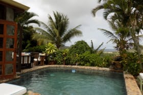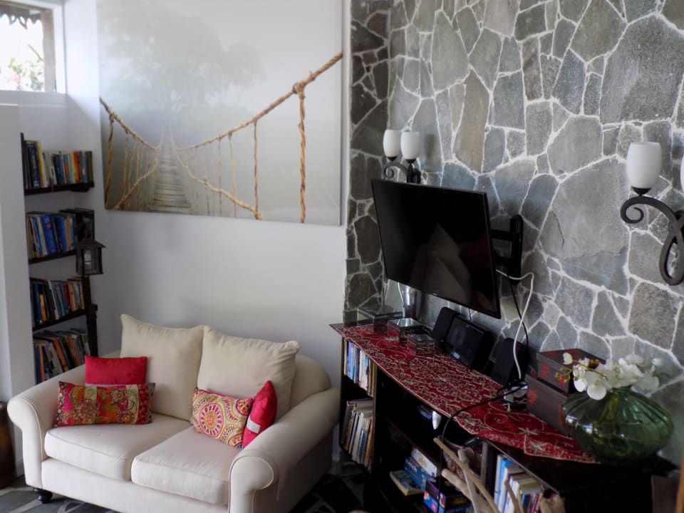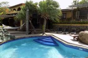 Zatarra house is a modern, chic yet Caribbean styled 3 bedroom, 3 bathroom haven, is larger than Villa Zatarra yet share the same ¾ acre lot; while each can maintain total privacy from each other. This provides the option of renting either or both depending on your particular desire for the property. Original paintings, driftwood, stone floors, wooden decks, waterfalls, herb garden, and hammocks are just some of the eye pleasing features of this property. .